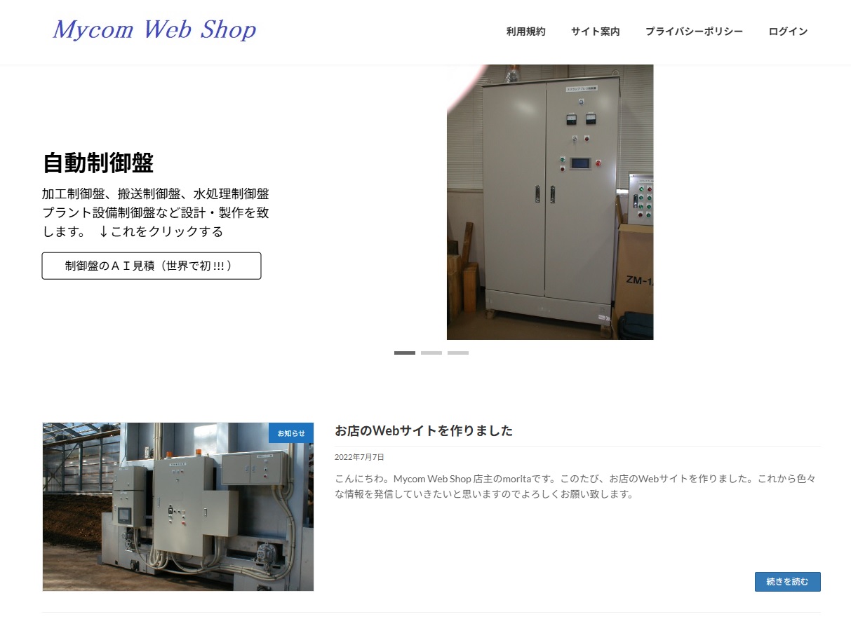Mycom Web Shop (当社直営のECサイト)で制御盤のAI見積・製造・販売サイトを公開しました。